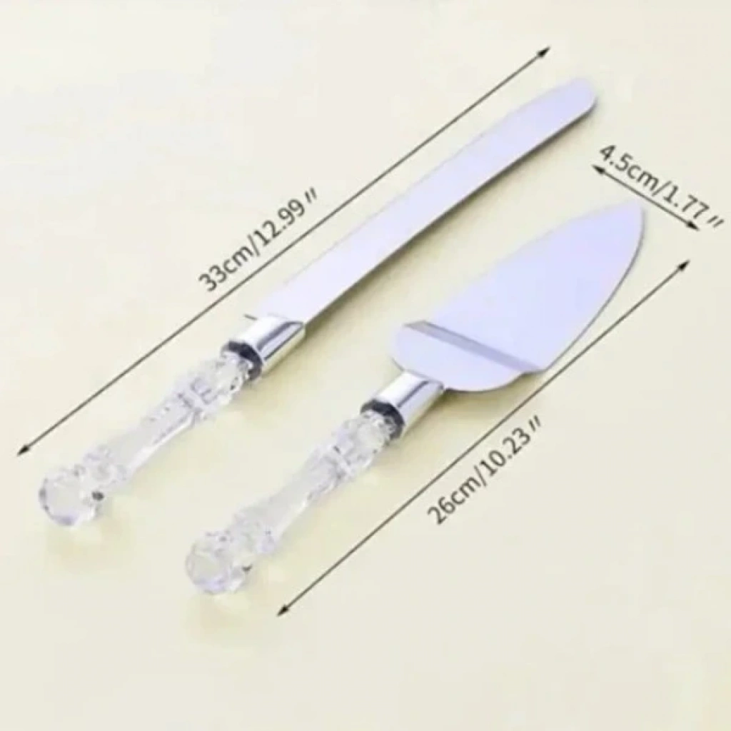2 PARÇA SERVİS SETİÜrün Özellikleri2 Parça Servis Seti şık ve özel tasarımıyla pasta, kek ve tatlı servislerinde hem estetik hem de pratik kullanım sağlar. Set içerisinde yer alan uzun servis bıçağı 33 cm, spatula ise 26 cm uzunluğunda olup ideal boyutları sayesinde dilimleri düzgün şekilde kesip servis etmeye yardımcı olur. Şeffaf görünümlü kabza tasarımı sofralara zarif bir görünüm kazandırırken paslanmaz çelik servis yüzeyleri dayanıklılık ve uzun ömürlü kullanım sunar. Kesim bıçağı 4,5 cm genişliğiyle rahat kavrama ve dengeli kesim sağlarken, spatula yüzeyi dilimleri kırmadan almayı kolaylaştırır. Özel günler, doğum günleri, nişan ve düğün pastalarında tercih edilebilecek zarif sunum alternatifi olan bu set, mutfakta hem günlük kullanıma hem davet sofralarına uygundur. Paketli halde gönderilir.Paket İçeriği1 Adet Servis Bıçağı (33 cm)1 Adet Servis Spatulası (26 cm)