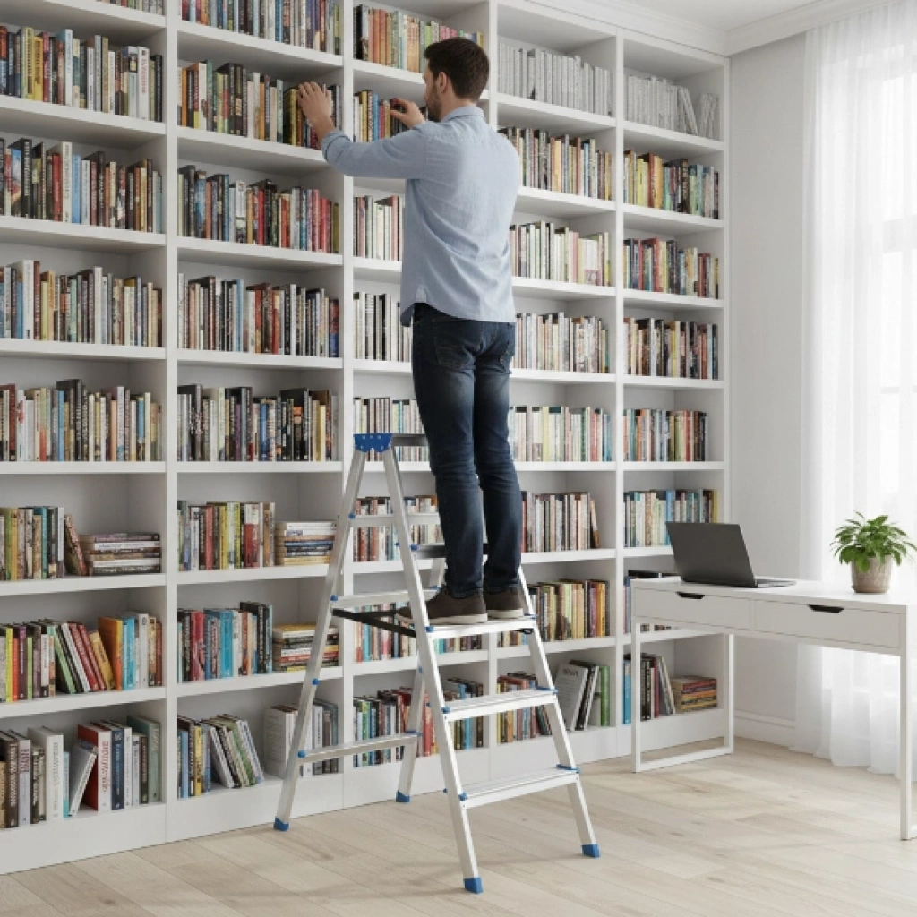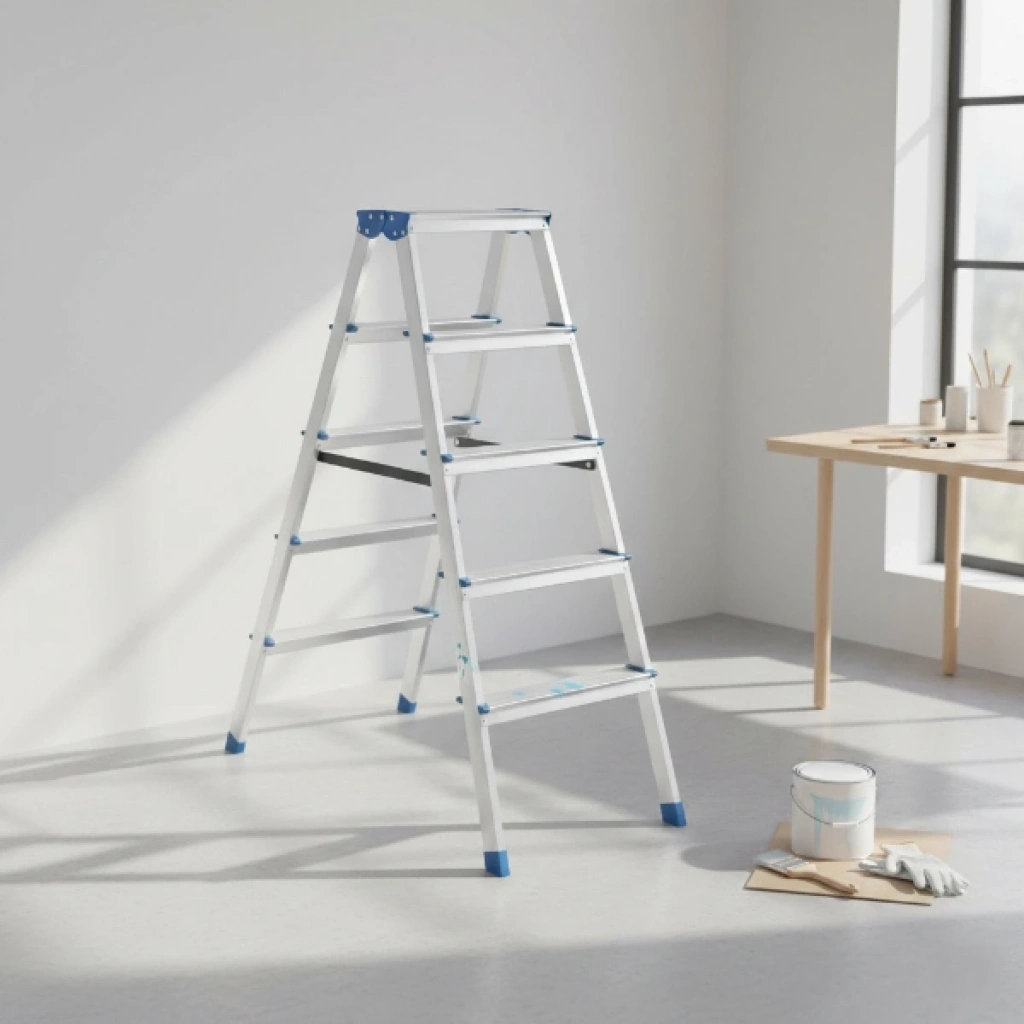 5+5 ÇİFT BASAMAKLI ALÜMİNYUM METAL MERDİVEN Ürün Özellikleri5+5 Çift Basamaklı Alüminyum Metal Merdiven, yüksek alanlarda güvenli ve pratik kullanım sunan dayanıklı bir yardımcı ekipmandır. 115 cm yüksekliği sayesinde ev, ofis ve profesyonel alanlarda rahat erişim imkânı sağlar. Karşılıklı 5+5 basamak tasarımı ile iki taraftan da kullanılabilen bu çift basamaklı merdiven, işlerinizi daha hızlı ve konforlu şekilde yapmanıza yardımcı olur. Hafif fakat sağlam alüminyum gövde yapısı sayesinde kolay taşınır ve dengeli bir duruş sunar. 8 cm baş genişliği bulunan basamak yüzeyi, güvenli ve rahat basış alanı oluşturur. Katlanabilir tasarımı sayesinde kullanılmadığında yer kaplamaz ve kolayca muhafaza edilir. Ev içi bakım, montaj, temizlik ve boya işleri için ideal bir alüminyum metal merdiven modelidir.Ürün Teknik Özellikleri Özellik Açıklama Ürün Adı 5+5 Çift Basamaklı Alüminyum Metal Merdiven Yükseklik 115 cm Basamak Yapısı 5+5 çift taraflı kullanım Baş Genişliği 8 cm Malzeme Alüminyum metal Paket İçeriği1 adet 5+5 Çift Basamaklı Alüminyum Metal Merdiven