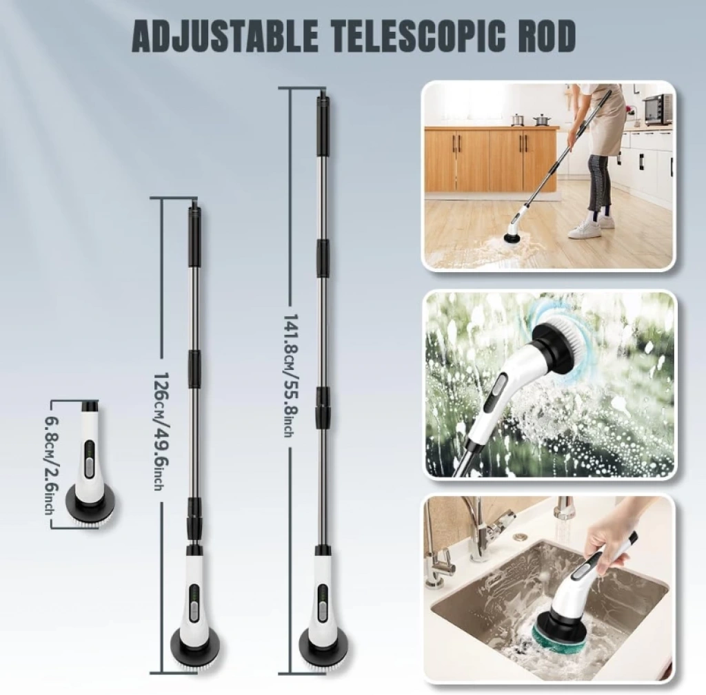 7 İN 1 KABLOSUZ ELEKTRİKLİ TEMİZLİK FIRÇASI SETİÜrün Özellikleri7 in 1 kablosuz elektrikli temizlik fırçası seti, ev ve araç temizliğinde maksimum konfor sunar. Uzatılabilir teleskopik sapı sayesinde 68 cm’den 141 cm’ye kadar ayarlanabilir ve yüksek veya ulaşılması zor alanlarda kolay temizlik sağlar. Güçlü döner motoru ile sabun, kir ve yağ kalıntılarını hızlı bir şekilde temizler. Farklı yüzeyler için özel olarak tasarlanmış 7 adet fırça ve sünger başlık içerir; lavabo, banyo, fayans, mutfak tezgahı, cam, araba yüzeyleri ve zeminlerde mükemmel sonuç verir. Ergonomik ve suya dayanıklı gövdesiyle uzun süreli kullanım sağlar. Kablosuz ve şarjlı yapısı sayesinde pratik kullanım sunar, kablo karmaşası olmadan temizlik yapılabilir. Şarj edilebilir bataryası ile tek şarjda uzun süre kesintisiz temizlik imkânı sağlar.Paket İçeriği1 adet teleskopik saplı elektrikli fırça7 adet değiştirilebilir temizlik başlığı1 adet USB şarj kablosu