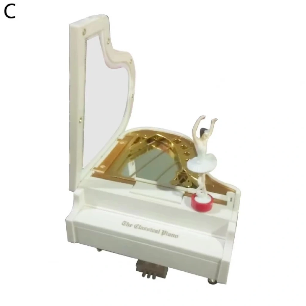 BALERİN FİGÜRLÜ PİYANO MÜZİK KUTUSUÜrün ÖzellikleriPiyano şeklindeki tasarımıyla dikkat çeker. Üst kısmında açılabilir bir kapak ve içinde dans eden bir figür bulunmaktadır.Kaliteli plastik malzemeden üretilmiştir ve dayanıklıdır. Kurma kolu sayesinde çalışır ve melodik bir müzik çalar. Çalarken figür hareket eder, bu da ürüne dinamik bir özellik katar. Kompakt tasarımı sayesinde masa üzerinde, vitrinde veya raflarda kolayca sergilenebilir. Özellikle özel günlerde (doğum günü, sevgililer günü, yıl dönümü) şık bir hediye seçeneği olarak öne çıkar.Ev veya ofis dekorasyonunda kullanılabilir. Çocuklar ve yetişkinler için nostaljik bir oyuncak veya aksesuar olarak değerlendirilebilir. Hediye kutusu içerisinde sunularak unutulmaz bir jest yapılabilir. Bu müzik kutusu, estetik görünümü ve duygusal çağrışımlarıyla hem dekoratif hem de işlevsel bir üründür. Ayrıca farklı yaş gruplarına hitap eden nostaljik bir atmosfer yaratır.Beyaz ve pembe renk mevcuttur. Ürün stok durumuna göre gönderilmektedir.Paket İçeriği1 adet Balerin Figürlü Piyano Müzik Kutusu