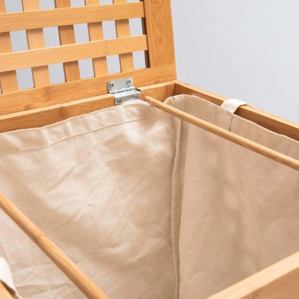 Büyük Boy Ahşap Bambu Kirli Sepeti 45x45x62