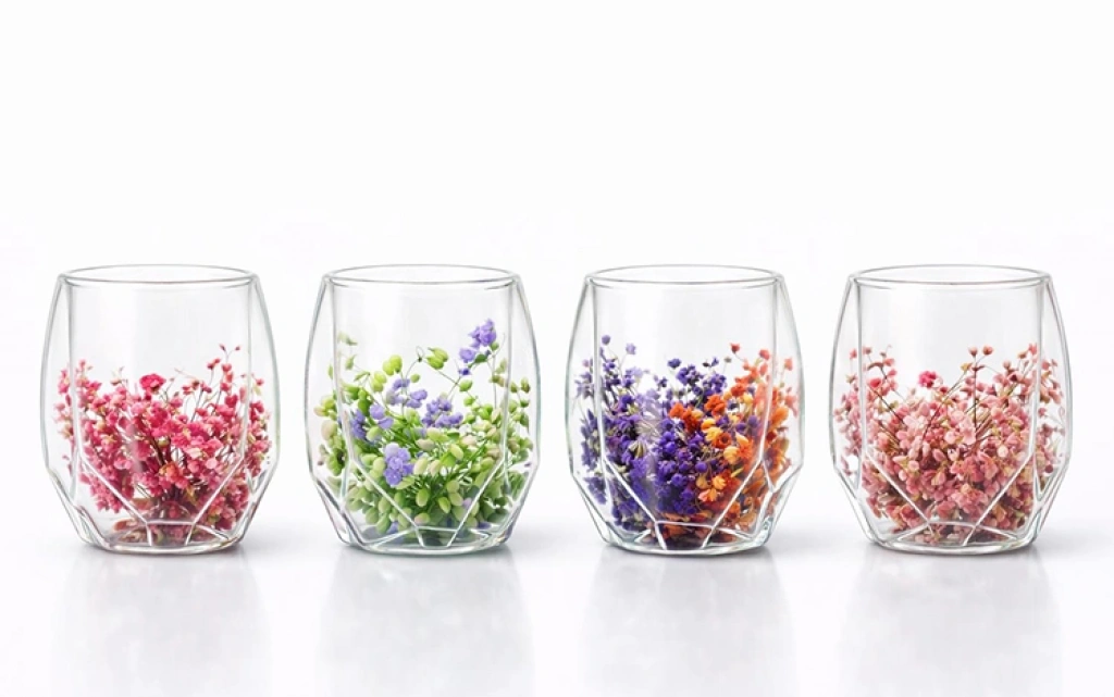 Çift Camlı Çiçekli Köşeli Bardak