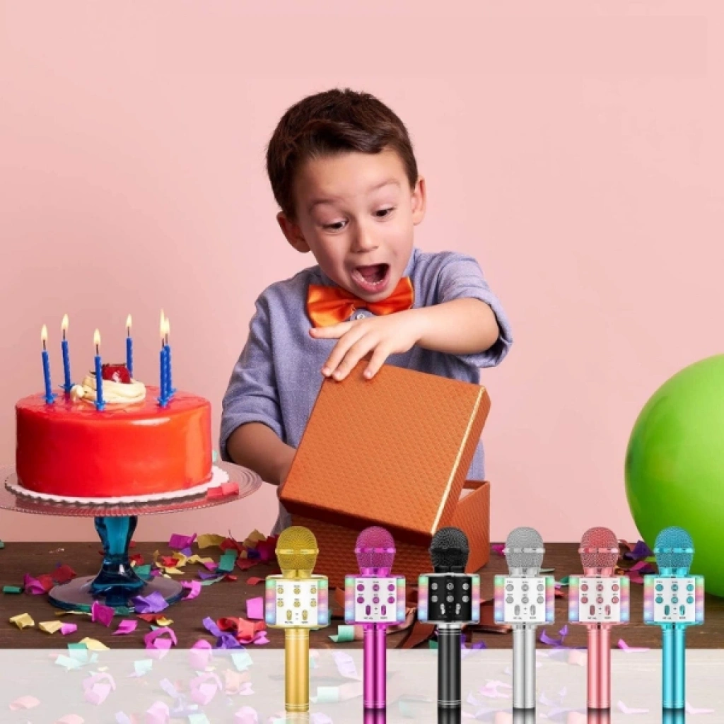 KABLOSUZ HOPARLÖRLÜ BLUETOOTH KARAOKE MİKROFONUÜrün ÖzellikleriKablosuz Hoparlörlü Bluetooth Karaoke Mikrofonu, eğlenceyi her yere taşımak isteyenler için tasarlanmış çok fonksiyonlu ve yüksek performanslı bir ses sistemidir. Bu akıllı cihaz; bir mikrofon, bluetooth hoparlör ve kayıt cihazını tek bir gövdede birleştirerek evde, partilerde veya dış mekanlarda profesyonel karaoke deneyimi sunar. Bluetooth bağlantısı sayesinde akıllı telefon, tablet ve bilgisayarlarla saniyeler içinde eşleşir ve en sevdiğiniz şarkıları çalarken aynı zamanda üzerine şarkı söylemenize olanak tanır. Üzerinde yer alan gelişmiş kontrol paneli aracılığıyla; ses yüksekliği, yankı (echo) efekti ve müzik ses seviyesini bağımsız olarak ayarlayarak sesinizi en iyi şekilde optimize edebilirsiniz. Dahili yüksek kaliteli hoparlörü, net ve berrak bir ses çıkışı sağlarken ergonomik tasarımı uzun süreli kullanımlarda bile rahat bir tutuş vaat eder. USB bellek ve Micro SD kart desteği ile internet bağlantısı olmasa bile müzik keyfini devam ettirebilirsiniz. Şarj edilebilir bataryası sayesinde kablo karmaşasına son veren bu karaoke mikrofonu, hem çocuklar hem de yetişkinler için unutulmaz bir hediyelik eşya seçeneğidir. Göz alıcı metalik renk seçenekleri ve dayanıklı gövde yapısıyla bu cihaz, eğlencenin odak noktası olmaya hazırdır.Ürün Teknik ÖzellikleriÖzellikAçıklamaÜrün AdıKablosuz Bluetooth Karaoke MikrofonuBağlantı TipiBluetooth, USB Bellek, Micro SD, AUXFonksiyonlarSes Kayıt, Hoparlör, Mikrofon, Echo EfektiBataryaDahili Şarj Edilebilir Lityum BataryaRenk SeçenekleriGörseldeki Renklerden Karışık GönderilirUyumlulukiOS ve Android Cihazlar ile Tam UyumMalzemeDayanıklı Metalik Kaplamalı ABSPaket İçeriği1 Adet Kablosuz Bluetooth Karaoke Mikrofonu (Renk stok durumuna göre karışık gönderilmektedir.)