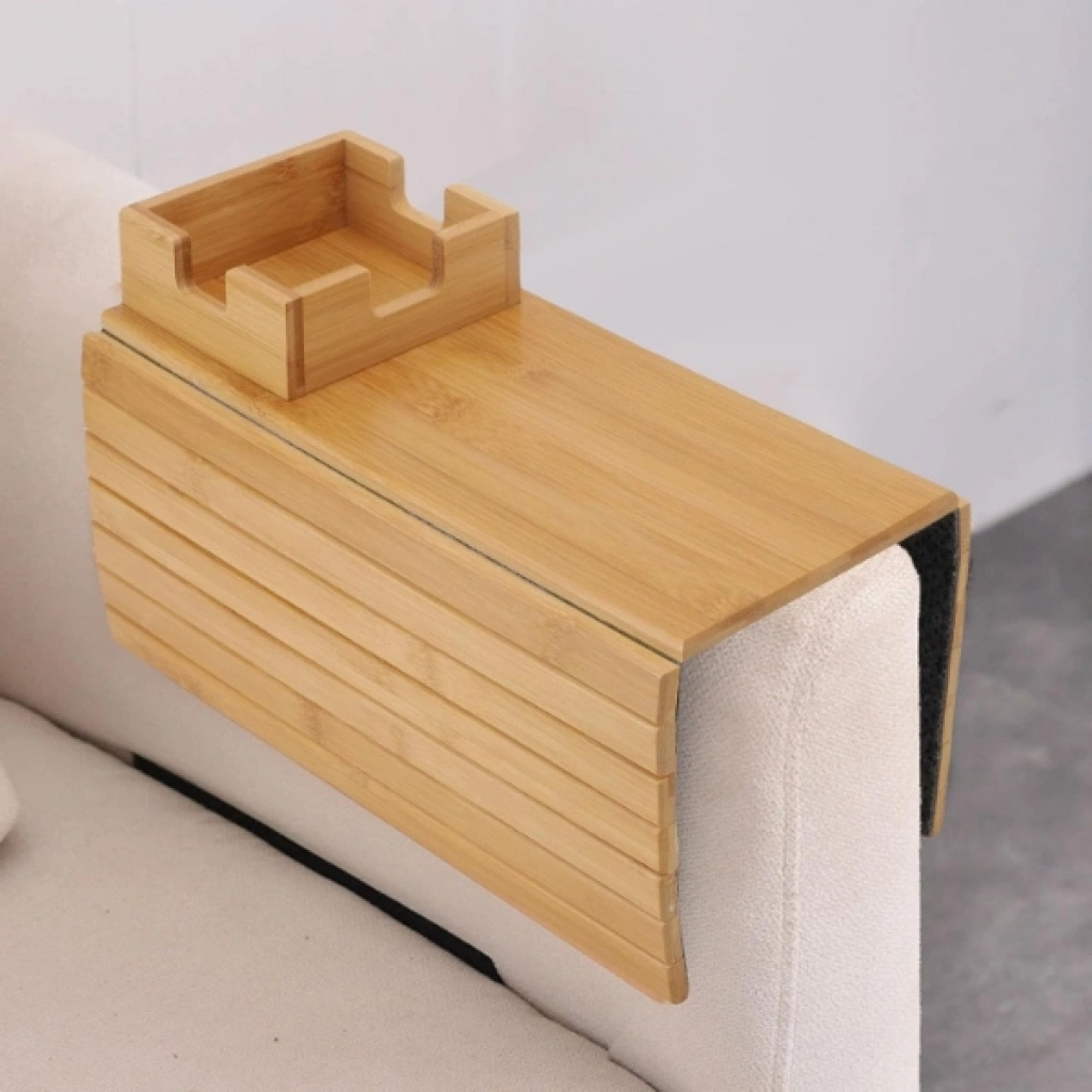 KATLANABİLİR AHŞAP KOLTUK YANI KANEPE TEPSİSİÜrün ÖzellikleriKatlanabilir ahşap koltuk yanı kanepe tepsisi, kol dayama kısmını pratik bir servis alanına dönüştürmek için tasarlanmış kullanışlı bir ev aksesuarıdır. Esnek ve katlanabilir 32x33 cm boyutundaki yapısı sayesinde farklı genişlikteki koltuk ve kanepelere kolayca uyum sağlar. Ahşap yüzeyi içecek, atıştırmalık, kumanda veya telefon gibi eşyaları sabit bir zemin üzerinde kullanmanıza imkân tanır. Üst kısmında yer alan özel bölmeli alan sayesinde kupa veya bardak daha dengeli şekilde konumlandırılabilir. Koltuk yanı tepsi tasarımı ile sehpa ihtiyacını azaltır ve dar alanlarda pratik çözüm sunar. Katlanabilir kanepe tepsisi kullanılmadığında düz şekilde katlanarak kolayca saklanabilir. Doğal ahşap görünümü ile dekorasyona uyum sağlar ve hem oturma odasında hem de çalışma alanlarında işlevsel kullanım sunar. Ahşap koltuk kol dayama tepsisi, evde konforlu ve düzenli bir kullanım deneyimi sağlar.Ürün Teknik Özellikleri Özellik Açıklama Ürün Adı Katlanabilir Ahşap Koltuk Yanı Kanepe Tepsisi Malzeme Ahşap Renk Doğal ahşap Kullanım Alanı Koltuk ve kanepe kol dayama alanı Paket İçeriği1 adet katlanabilir ahşap koltuk yanı kanepe tepsisi