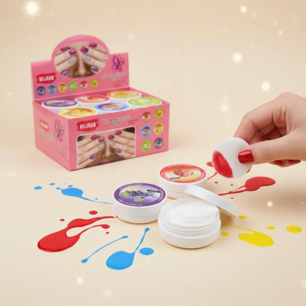 OJE TEMİZLEYİCİ PAMUKÜrün ÖzellikleriOje temizleyici pamuk, tırnak üzerindeki ojeyi pratik ve hızlı şekilde çıkarmak için tasarlanmış kullanıma hazır bir bakım ürünüdür. Önceden formüle edilmiş yapısı sayesinde ekstra aseton veya pamuk ihtiyacı olmadan doğrudan kullanılabilir. Yuvarlak ped formu tırnak yüzeyine tam oturarak ojenin kolayca çözülmesine yardımcı olur. Hazır oje çıkarıcı pamuk yapısı sayesinde çantada taşımaya uygundur ve seyahatlerde pratik çözüm sunar. Farklı kokulu formüller içeren ürünler karışık olarak gönderilir ve kullanım sırasında hoş bir koku deneyimi sağlar. Kokulu oje temizleyici pamuk, tırnak temizliğini zahmetsiz hale getirirken kompakt ambalajı sayesinde düzenli saklama imkânı sunar. Günlük kullanımda ve acil durumlarda hızlı oje temizliği için ideal bir alternatiftir.Ürün Teknik Özellikleri Özellik Açıklama Ürün Adı Oje Temizleyici Pamuk Malzeme Oje çıkarıcı solüsyon emdirilmiş pamuk ped Renk Farklı renkli ambalaj, karışık gönderim Kullanım Alanı Tırnak üzerindeki ojenin temizlenmesi Paket İçeriği1 adet oje temizleyici pamuk kutusu (farklı kokulu, karışık gönderim)