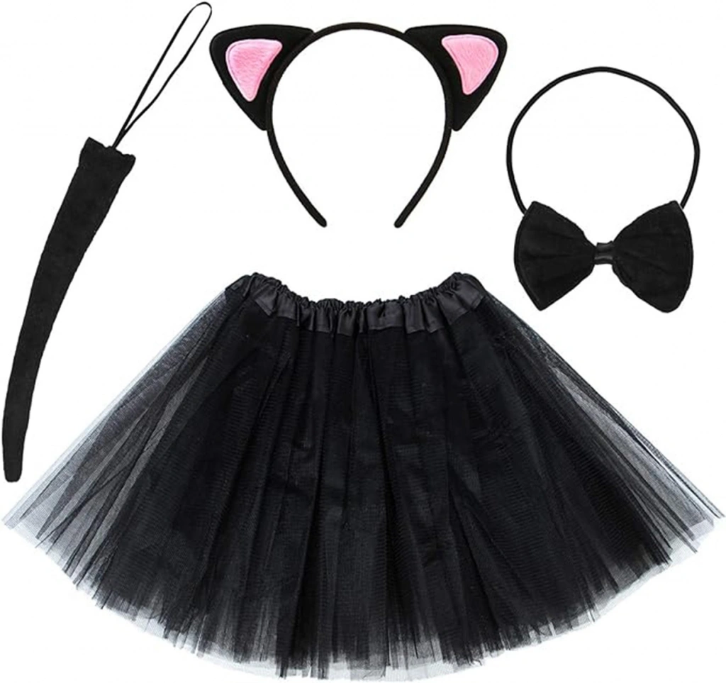 Etekli Pembe Kedi Seti -Taç, Kuyruk, Etek, Papyon Çocuk Boy