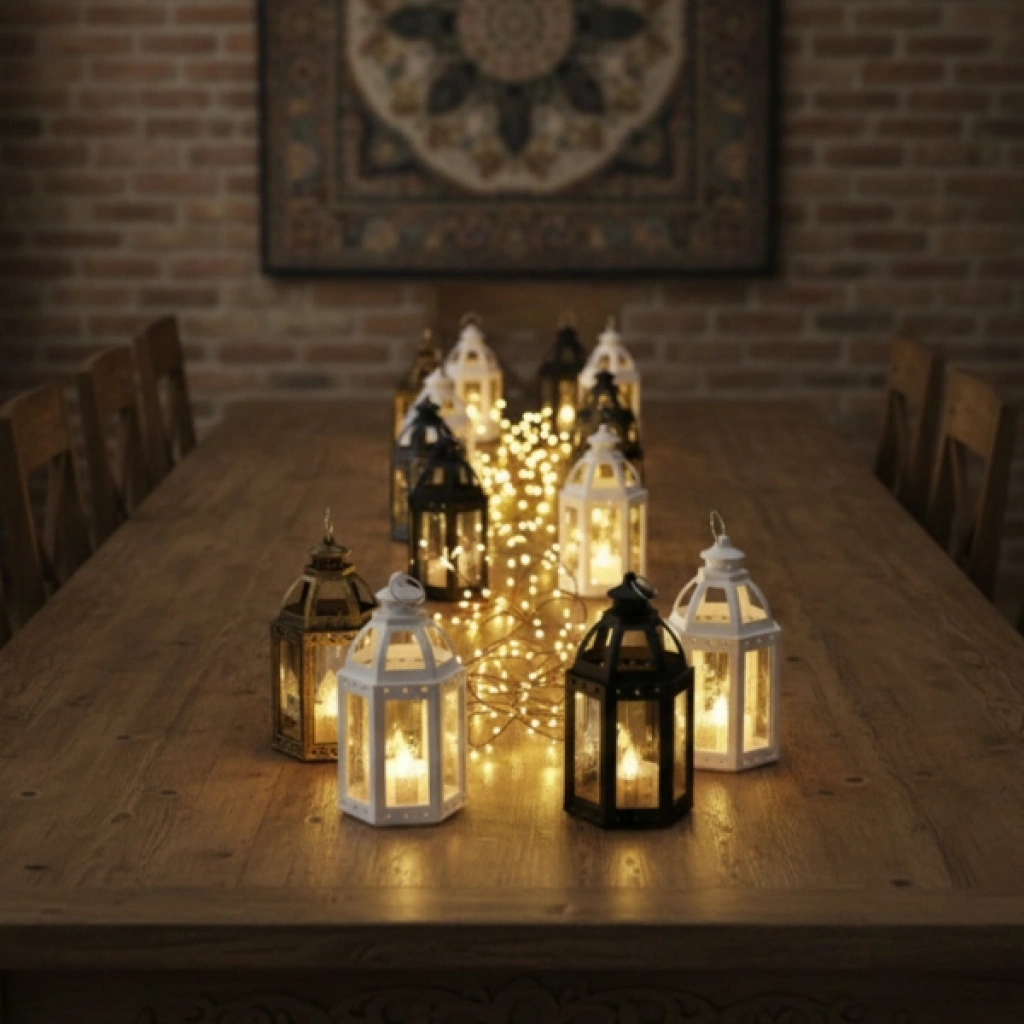 RAMAZAN TEMALI BÜYÜK ALTIGEN AÇIK KUBBE LED LAMBAÜrün ÖzellikleriRamazan Temalı Büyük Altıgen Açık Kubbe LED Lamba, Ramazan ayının manevi atmosferini ev ve iş yerlerine taşıyan şık ve dekoratif bir aydınlatma ürünüdür. Altıgen gövde formu ve açık kubbe tasarımı, klasik Ramazan fenerlerinden ilham alarak hazırlanmış olup ortama geleneksel ve sıcak bir hava katar. Plastik malzemeden üretilmiş olması sayesinde hafif, dayanıklı ve uzun ömürlü kullanım sunar. Gold, siyah, beyaz ve eskitme görünümlü renk alternatifleri bulunur; ancak renk seçimi yapılamaz ve ürünler görseldeki renklerden karışık olarak gönderilir.Pilli çalışma özelliği sayesinde kablo veya priz ihtiyacı olmadan istenilen her alanda rahatlıkla kullanılabilir. LED ışık yapısı, düşük enerji tüketimi ile uzun süreli kullanım sağlarken, yumuşak ve göz yormayan bir aydınlatma sunar. Masa üstü, vitrin, pencere önü, raf, iftar masası, Ramazan köşeleri ve organizasyon dekorasyonları için ideal bir tamamlayıcıdır. Ev dekorasyonunun yanı sıra kafe, restoran, ofis ve etkinlik alanlarında Ramazan ruhunu yansıtan estetik bir dokunuş oluşturur. Açık kubbe formu sayesinde ışık daha geniş alana yayılır ve dekoratif görünüm ön plana çıkar.Paket İçeriği1 adet Ramazan Temalı Büyük Altıgen Açık Kubbe LED Lamba