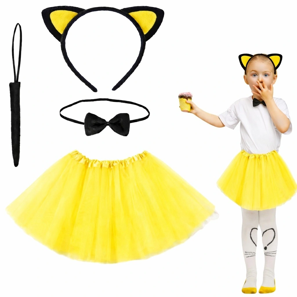 SARI RENK KEDİ KOSTÜM SETİ - TÜTÜ, TAÇ, PAPYON, KUYRUKÜrün ÖzellikleriSarı renk kedi kostüm seti, canlı rengi ve sevimli detaylarıyla kız çocukları için eğlenceli ve dikkat çekici bir kostüm alternatifidir. Esnek yapısı sayesinde çocukların rahatça hareket etmesine imkân tanır ve standart beden ölçüsüyle farklı vücut yapılarına uyum sağlar. Kabarık tütü etek, kostüme neşeli bir hacim kazandırırken kedi kulaklı taç sevimli bir karakter görünümü oluşturur. Papyon ve kuyruk detayları seti tamamlayarak bütünlüklü bir kedi konsepti sunar. Hafif ve çocuk uyumlu malzemeden üretilmiş olması, uzun süreli kullanımlarda rahatsızlık vermeden konforlu bir deneyim sağlar. Doğum günü partileri, okul etkinlikleri, sahne gösterileri, kostüm organizasyonları ve fotoğraf çekimleri için ideal olan bu set, çocukların hayal gücünü destekler ve eğlenceli anlar yaşamasına katkı sağlar. Kolay giyilip çıkarılabilen yapısı sayesinde pratik kullanım sunar ve farklı kombinlerle rahatlıkla uyum sağlar.Paket İçeriği1 adet Sarı Renk Kedi Kostüm Seti (Tütü + Taç + Papyon + Kuyruk)