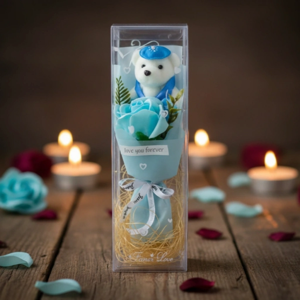 ŞEFFAF KUTULU AYICIKLI GÜL BUKETİÜrün ÖzellikleriŞeffaf kutulu ayıcıklı gül buketi, sevdiklerinize zarif ve anlamlı bir hediye sunmak için tasarlanmış dekoratif bir üründür. Şeffaf koruyucu kutusu sayesinde hem estetik bir sunum sağlar hem de ürünün formunu korur. İç kısmında yer alan dekoratif gül ve ayıcık detayı, özel günlerde romantik ve şık bir görünüm oluşturur. Buket içerisinde bulunan ayıcık strafor malzemeden üretilmiştir ve hafif yapısı ile dekoratif amaçlı kullanım sunar. Ayıcıklı gül buketi tasarımı sayesinde doğum günü, sevgililer günü, yıl dönümü ve özel kutlamalarda tercih edilebilir. Masa, raf ve vitrin dekorasyonunda kullanılabilen şeffaf kutulu hediye buketi, uzun süre formunu koruyarak kalıcı bir hatıra niteliği taşır. Renk seçimi yapılamaz, ürün görseldeki renklerden biri karışık olarak gönderilir. Dekoratif gül buketi tasarımı ile hem hediye hem de süs amaçlı kullanım için uygundur.Ürün Teknik Özellikleri Özellik Açıklama Ürün Adı Şeffaf Kutulu Ayıcıklı Gül Buketi Malzeme Strafor ayıcık ve dekoratif gül Renk Görseldeki renklerden biri, karışık gönderim Kullanım Alanı Hediye ve dekoratif süs Paket İçeriği1 adet şeffaf kutulu ayıcıklı gül buketi (renkler karışık gönderilir)