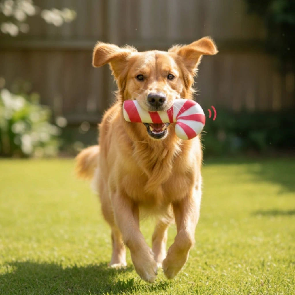 SESLİ BASTON ŞEKER OYUNCAKÜrün ÖzellikleriSesli Baston Şeker Oyuncak, sevimli şeker kamışı tasarımıyla hem köpeklerin dikkatini anında çeker hem de eğlenceli oyunlara ilham verir. Dayanıklı malzemesi sayesinde diş ve çene hareketlerine karşı yüksek direnç gösterir ve uzun süreli kullanım sunar. Sıkıldığında çıkan eğlenceli ses, köpeğinizin av içgüdüsünü harekete geçirerek oyunu daha heyecanlı hale getirir. Yumuşak ama sağlam yapısı sayesinde hem iç mekânda hem dış mekânda güvenle kullanılabilir. Hafif yapısı sayesinde köpeğiniz kolayca taşıyabilir, yakalama ve getirme oyunlarında keyifli vakit geçirir. Şık kırmızı-beyaz çizgili tasarımı, yılbaşı konseptine uyum sağlarken günlük kullanım için de ideal bir oyuncaktır. Toksik olmayan malzemeden üretildiği için patili dostunuzun sağlığına zararsızdır ve kolay temizlenebilir yüzeyi hijyenik bir kullanım sunar.Paket İçeriği1 adet sesli baston şeker oyuncak