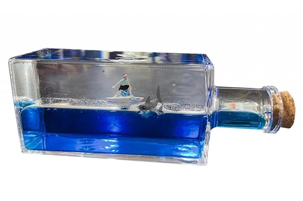 SÖRFÇÜ FİGÜRLÜ ŞİŞE İÇİNDE BATMAYAN GEMİÜrün ÖzellikleriSörfçü Figürlü Şişe İçinde Batmayan Gemi, şeffaf şişe tasarımı içinde yer alan figür detayı ve sıvı mekanizmasıyla dikkat çeken dekoratif bir masaüstü objesidir. İç kısmındaki mavi sıvı zemin üzerinde konumlandırılmış figür, şişe ters çevrildiğinde yavaş hareket ederek ve batmayarak görsel bir akış oluşturur. Dinamik yapısıyla öne çıkan şişe içinde batmayan gemi tasarımı, klasik dekoratif objelerden farklı olarak hareketli ve eğlenceli bir deneyim sunar. Şeffaf gövde formu ve içindeki detaylı figür yapısı ürüne tematik bir karakter kazandırır. Deniz konseptli tasarımıyla öne çıkan bu model, koleksiyon amaçlı veya masaüstü dekor olarak tercih edilebilecek bir hareketli dekoratif masaüstü obje alternatifidir. 17x6 cm ölçüsündeki uzun formu sayesinde raf ve masa üzerinde dikkat çekici bir görünüm sunar.Ürün Teknik ÖzellikleriÖzellikAçıklamaÜrün AdıSörfçü Figürlü Şişe İçinde Batmayan GemiBoyut17 x 6 cmTasarımŞeffaf Şişe İçinde FigürlüÖzellikSıvı İçinde Hareketli MekanizmaKullanım AlanıMasaüstü Dekor ve KoleksiyonPaket İçeriği1 Adet Sörfçü Figürlü Şişe İçinde Batmayan Gemi