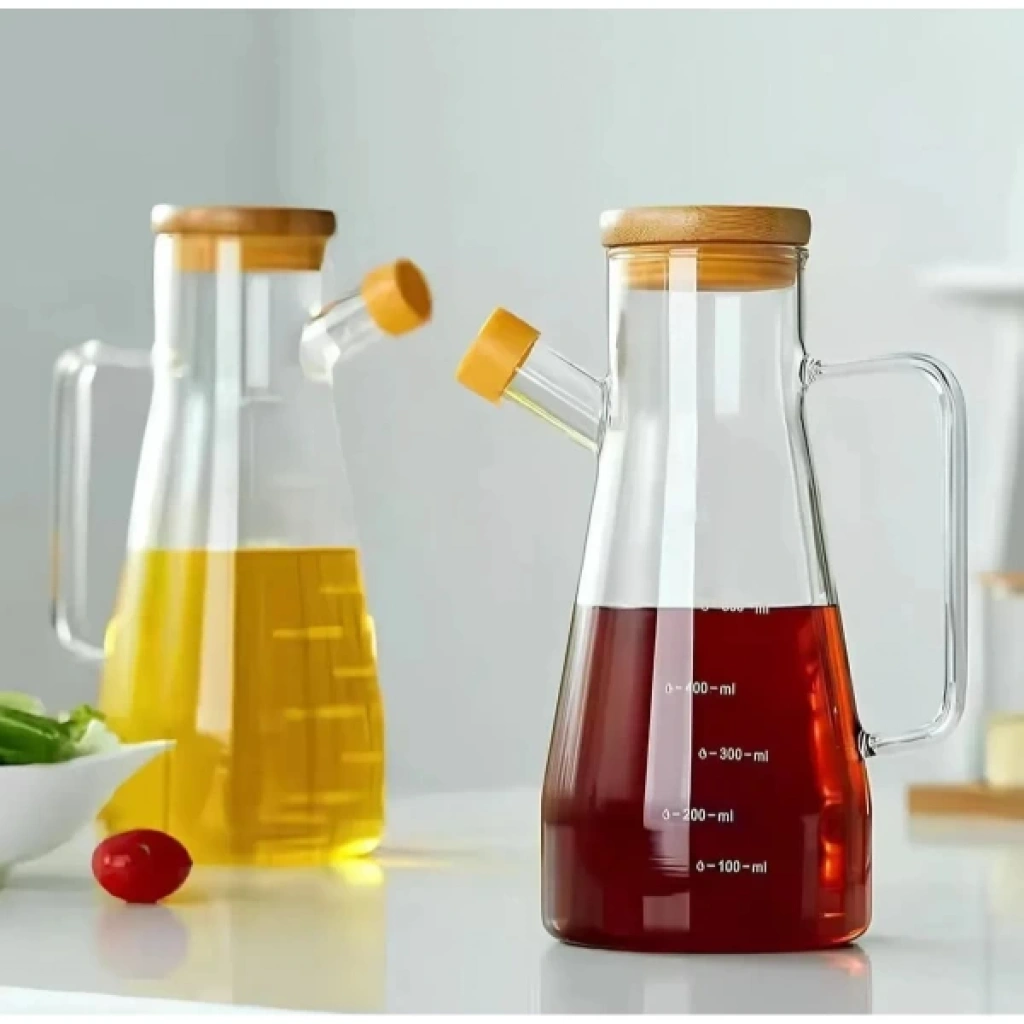 STANDLI 2'Lİ CAM YAĞDANLIKÜrün ÖzellikleriStandlı 2'li Cam Yağdanlık, şık ve fonksiyonel tasarımı ile mutfaklarınıza zarif bir dokunuş katar. Borosilikat cam malzeme ile üretilmiştir ve 900 ml kapasiteye sahiptir. Silikon uçları sayesinde sızdırmazlık sağlar ve kullanım sırasında kolayca kontrol edilebilir. 2 adet olarak sunulan bu set, yemeklerinizde ya da salatalarınızda doğru miktarda yağ dökmenizi sağlar. Ahşap kapakları ise estetik ve doğallığı bir araya getirir. Ayrıca, her iki yağdanlık da üzerinde ölçü birimleri ile işaretlenmiştir, böylece ihtiyacınız olan miktarı daha rahat ayarlayabilirsiniz.Paket İçeriği1 Adet Standlı 2'li Cam Yağdanlık