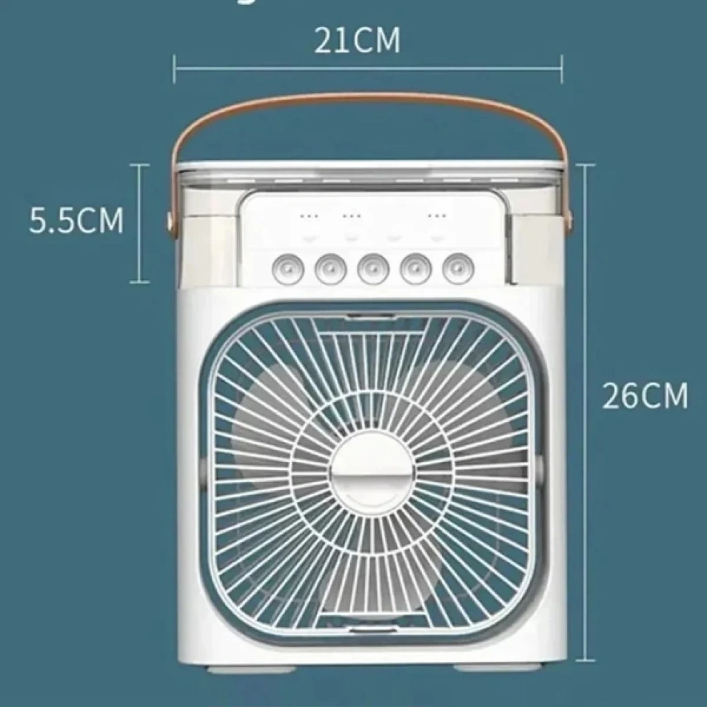 SU HAZNELİMASA VANTİLATÖRÜÜrün Özellikleri21 cm genişliğinde, 26 cm yüksekliğinde ve 5.5 cm derinliğinde olan su hazneli masa vantilatörü, hem serinletici hem de nemlendirici özelliğiyle yaz aylarında ferah bir ortam sunar. Üst kısmındaki 600 ml kapasiteli su haznesi musluk suyu ile doldurulabilir, istenirse buz da eklenerek daha serin bir etki elde edilebilir. Aynı anda 5 noktadan buhar püskürtme fonksiyonu ile geniş alanlarda etkili nemlendirme sağlar. 1 sprey ile 12 saat, 3 sprey ile 4 saat ve 5 sprey açıkken 2.5 saat kesintisiz çalışır. Taşıma sapı sayesinde kolayca taşınabilir. USB kablo ile çalışır ve farklı iç mekânlarda kullanıma uygundur. Klima gibi kuru hava yaratmaz, ortamın nem dengesini korur. Özellikle ev, ofis, yatak odası ve bebek odası gibi alanlarda tercih edilir.Paket İçeriği1 Adet Su Hazneli masa Vantilatörü