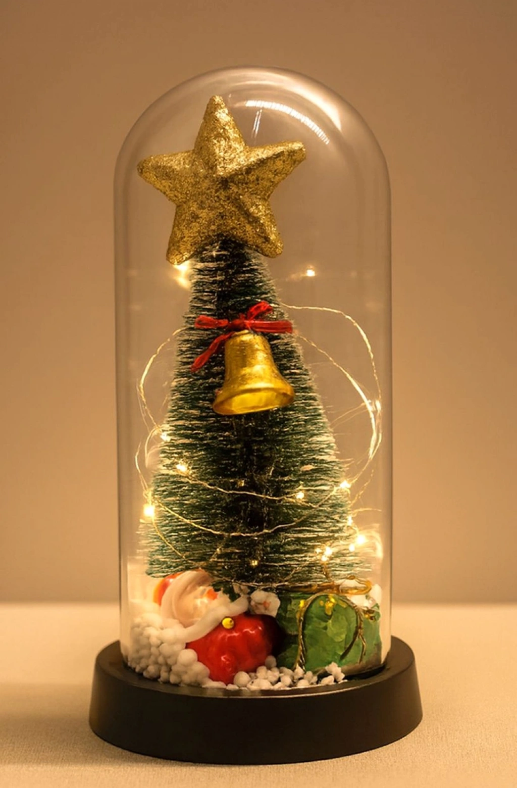 YILBAŞI TEMALI IŞIKLI DEKORATİF CAM FANUS - MODEL 6Ürün ÖzellikleriYılbaşı Temalı Işıklı Dekoratif Cam Fanus - Model 6, yeni yıl ruhunu yaşam alanlarınıza taşımak için tasarlanmış şık ve dikkat çekici bir dekorasyon ürünüdür. 21x11 cm ölçüsündeki ideal boyutu sayesinde masa üstü, sehpa, vitrin ve ofis dekorasyonlarında rahatlıkla kullanılabilen ışıklı cam fanus, cam kubbe formu ile estetik bir görünüm sunar. Fanus içerisinde yer alan yılbaşı temalı figür ve ağaç detayları ile öne çıkan yılbaşı dekoratif fanus, çok renkli ışık efektleri sayesinde loş ortamlarda sıcak bir ambiyans oluşturur. Siyah tabanlı tasarımı sayesinde dengeli bir duruş sergileyen dekoratif yılbaşı süsü, ev ve iş yeri dekorasyonlarında yeni yıl konseptini tamamlayan zarif bir tamamlayıcıdır. Kompakt ölçüsü sayesinde dar alanlarda bile rahatlıkla konumlandırılabilir ve dekoratif bütünlük sağlar.Ürün Teknik Özellikleri Özellik Açıklama Ürün Adı Yılbaşı Temalı Işıklı Dekoratif Cam Fanus - Model 6 Model Model 6 Ölçü 21 x 11 cm Tema Yılbaşı Özellik Işıklı Paket İçeriği1 Adet Yılbaşı Temalı Işıklı Dekoratif Cam Fanus - Model 6